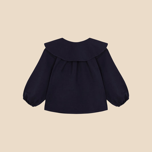 Lapel Collar Blouse Navy Knit