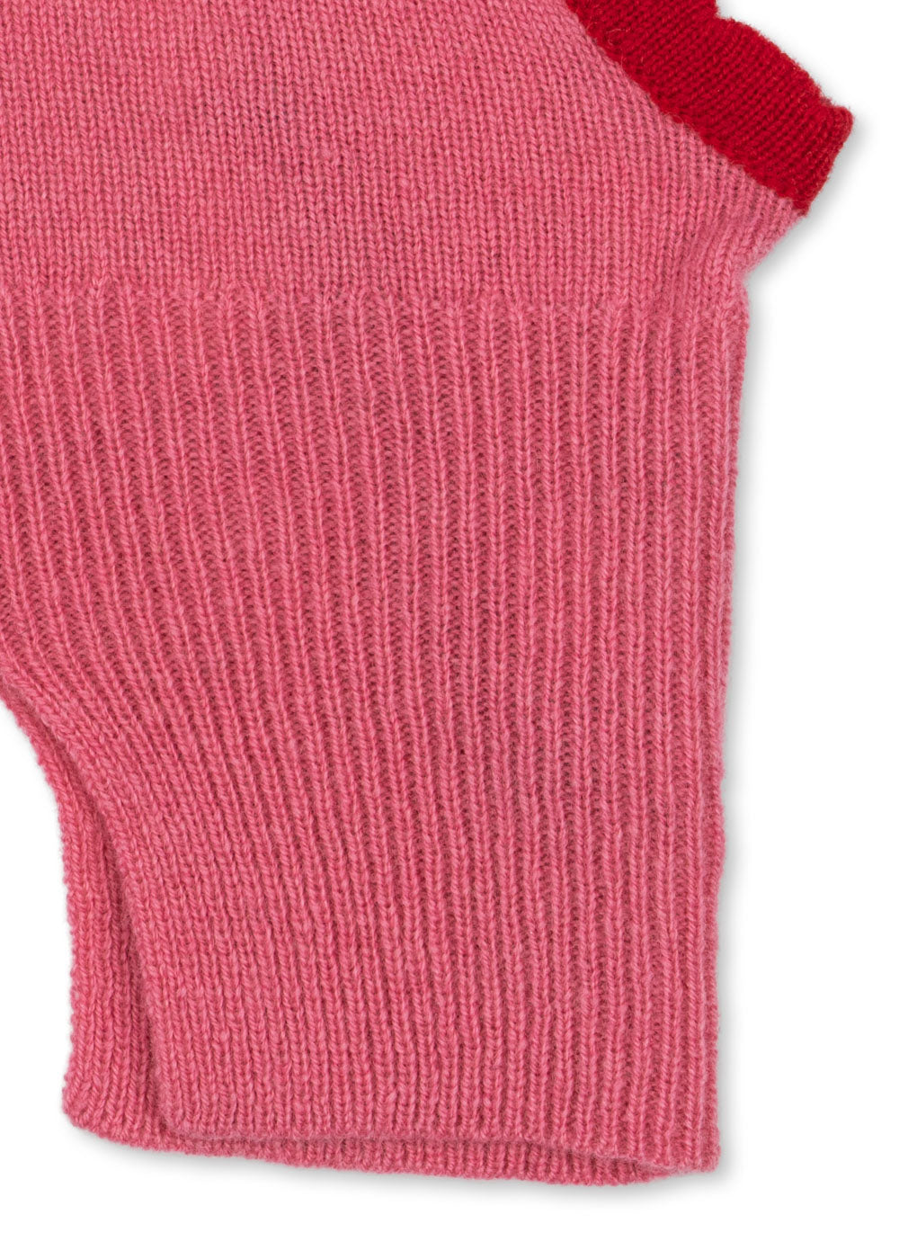 Warm balaclava made from breathable yet insulating wool. Heart-shaped design in front. Made from 100% wool