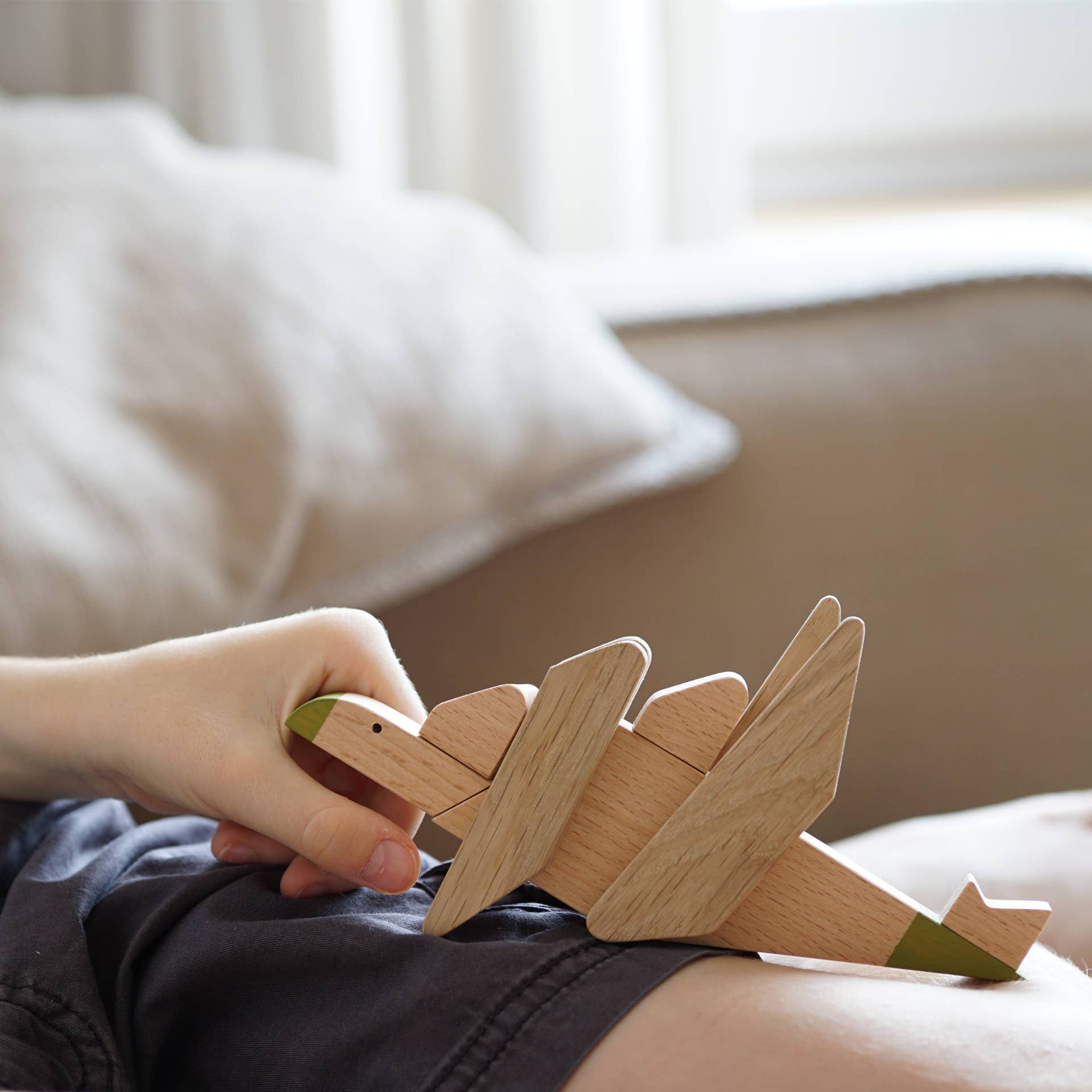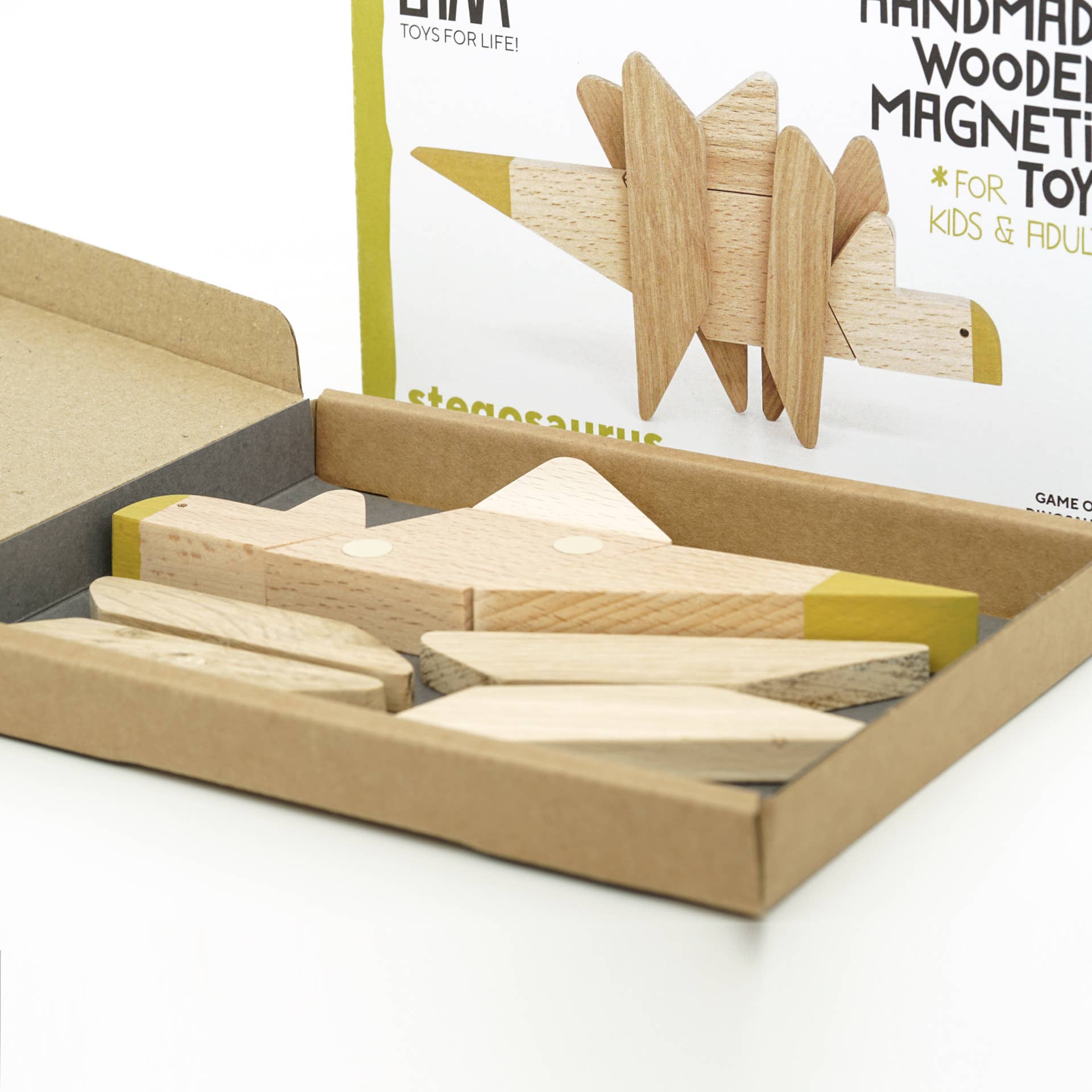 Stegosaurus magnetic puzzle is crafted with natural materials beech and oak. it is painted with eco-friendly paints.