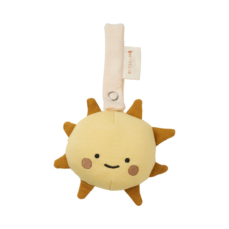 Fabelab's Activity toy - Sun is the perfect toy for those tiny, curious baby hands. Click it on to the baby gym, bed side or stroller and your little one will get hours of fun exploring the beautiful colours, fabric texture and captivating sounds.