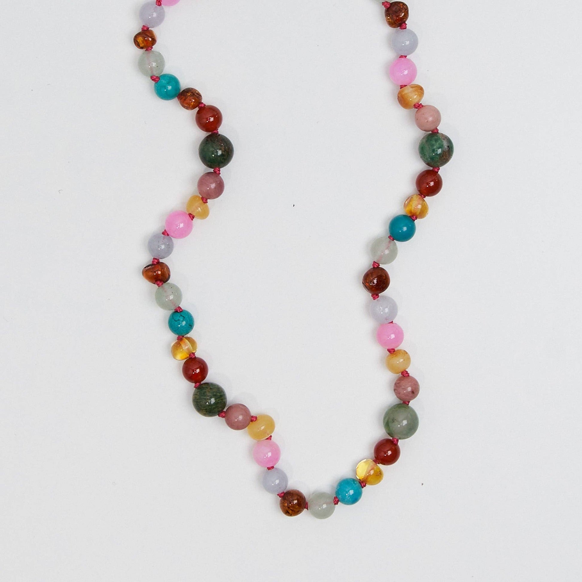 Green African Jade, Pink Jade, Green Aventurine, Carnelian, Turquoise, Aquamarine, Rhodocrosite & Amber (Safety Clasp)