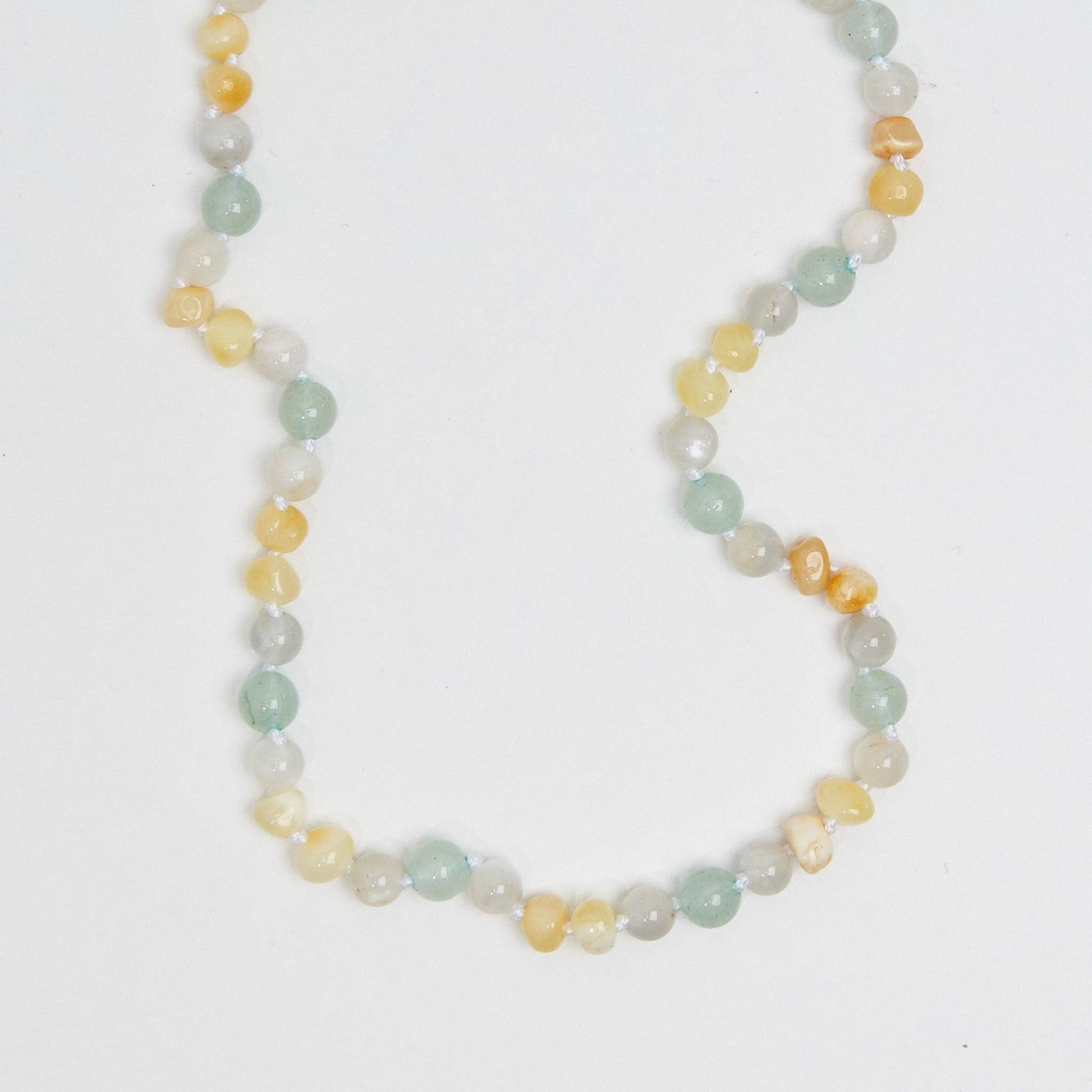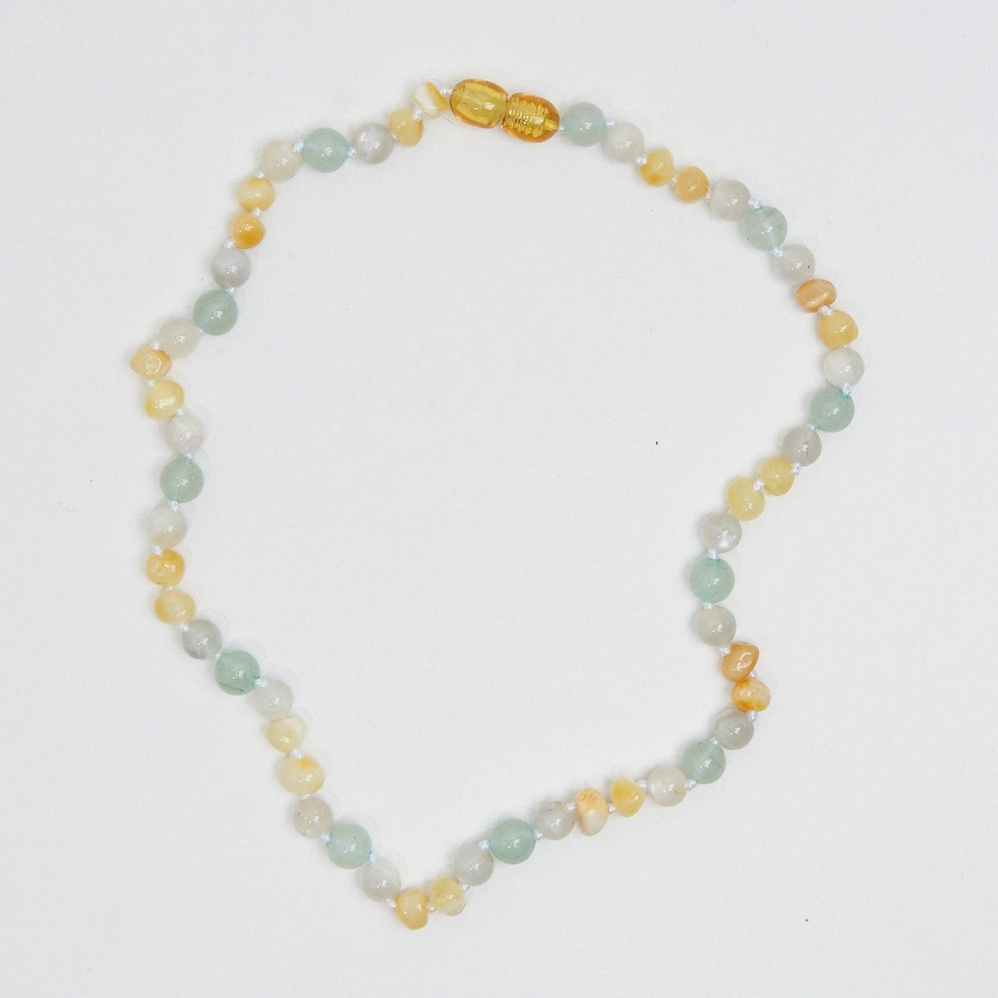 Dusty green Aventurine, Moonstone & Polished Milky Amber (safety clasp)