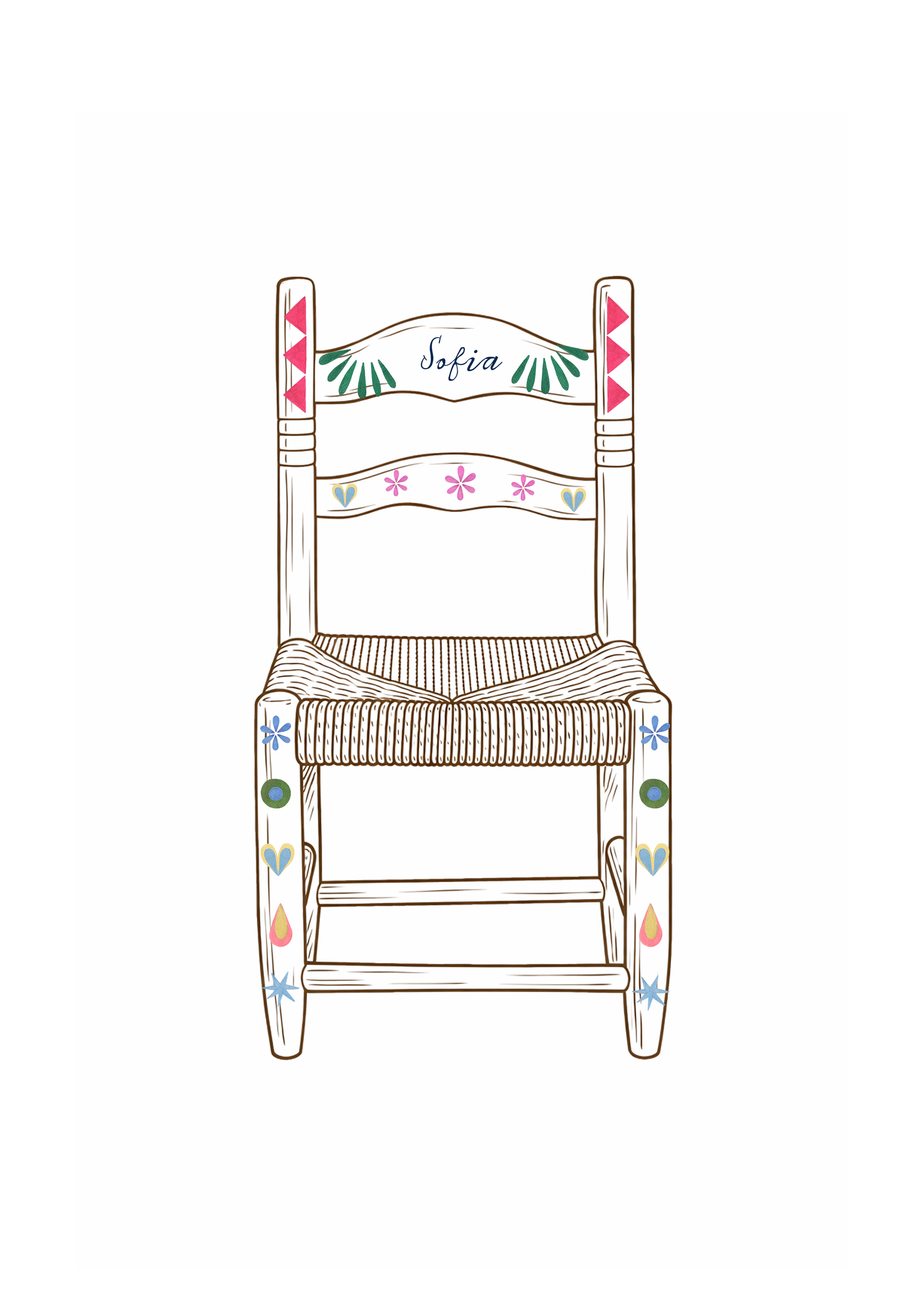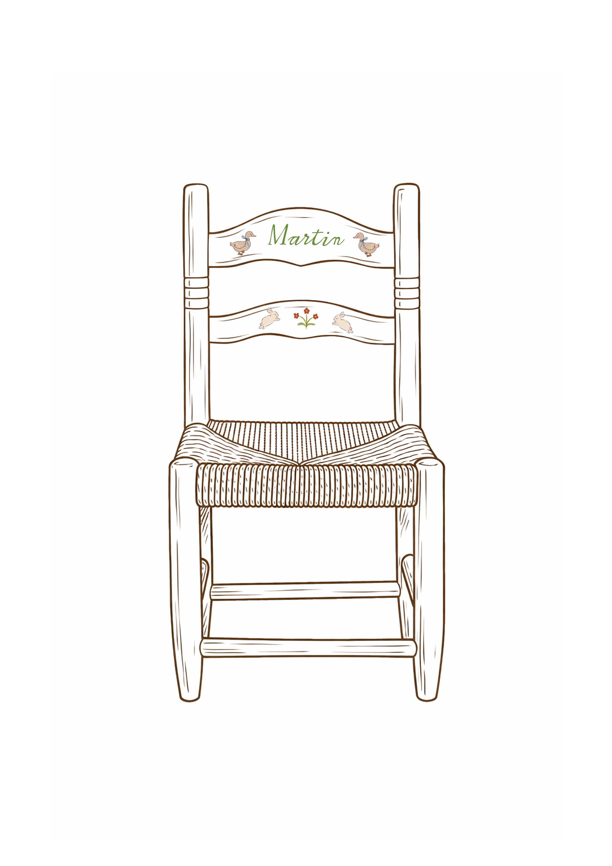 Hand-painted by Natalia Swarz, every chair becomes a one-of-a-kind keepsake. Delicate illustrations are thoughtfully applied by hand, then personalized with your child’s name — turning an everyday object into something deeply personal.
