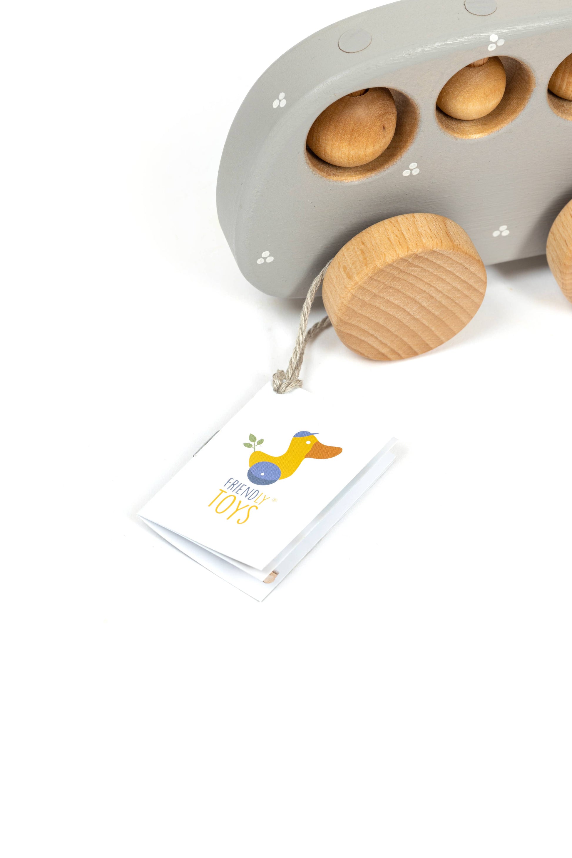 Wooden toys come with a tag with the information about material used, care instructions, toy safety information and the CE mark.