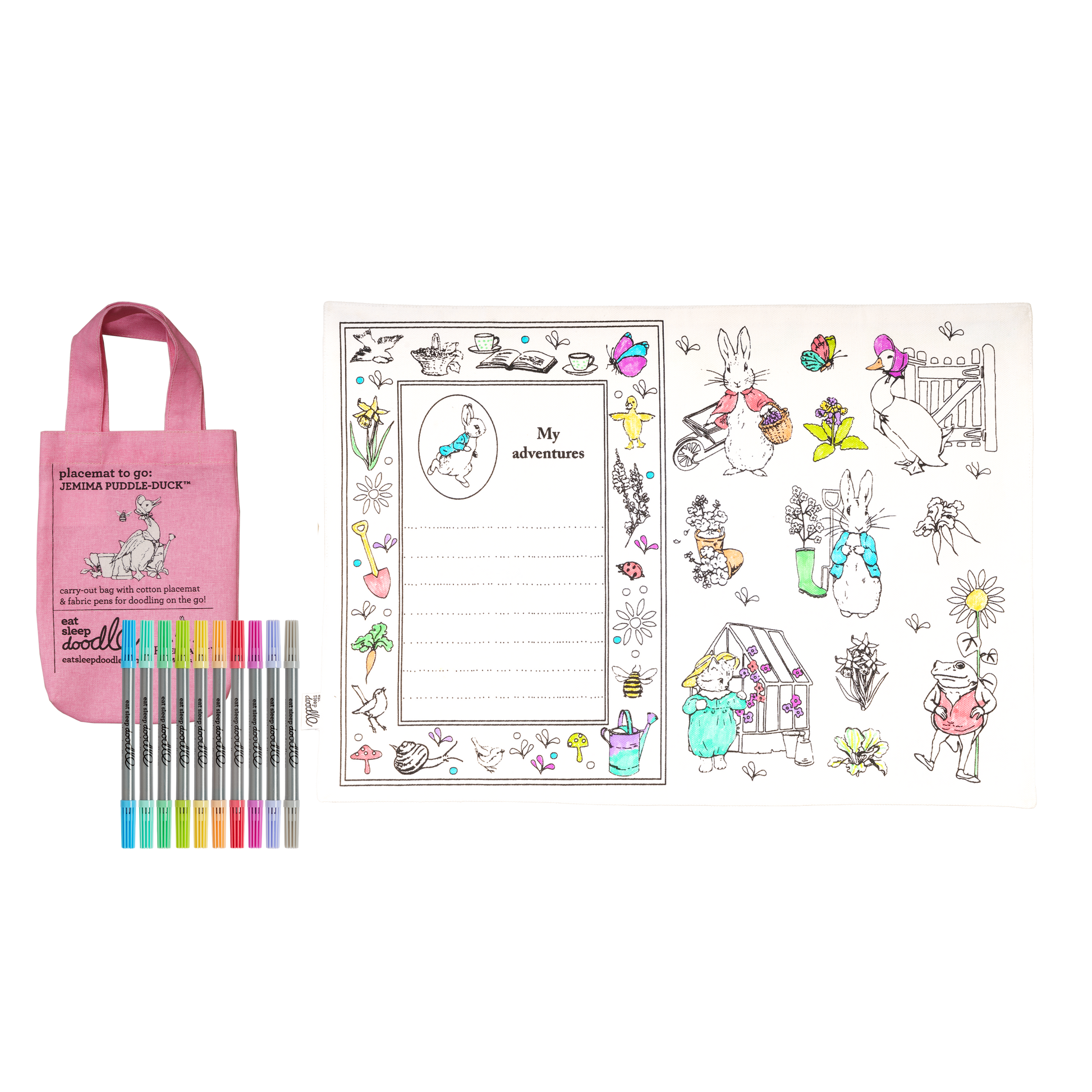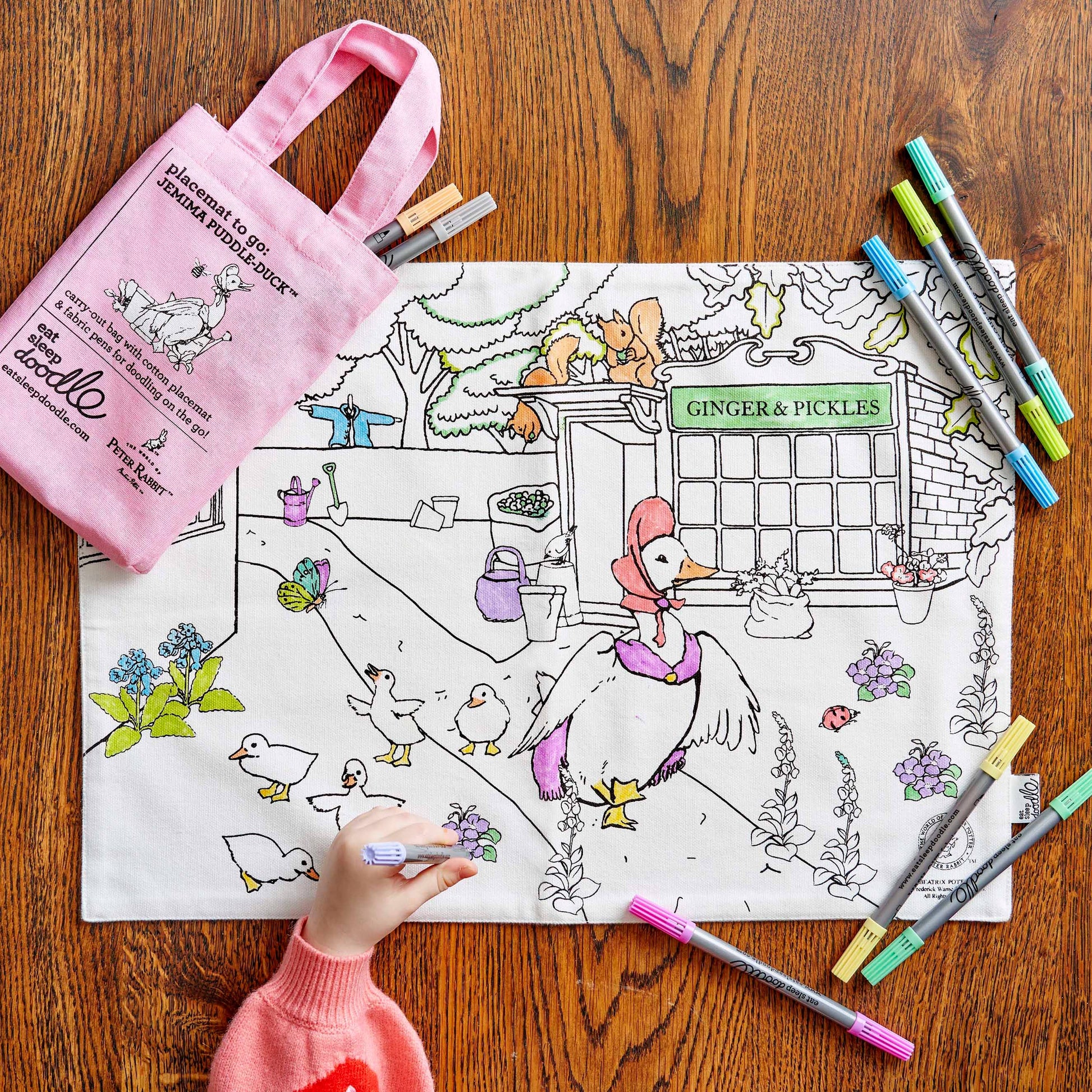 Kids can colour in and discover Beatrix Potter’s whimsical characters with this fun double-sided Jemima Puddle-Duck™ placemat ‘to go’ - with included set of 10 wash-out fabric pens.
