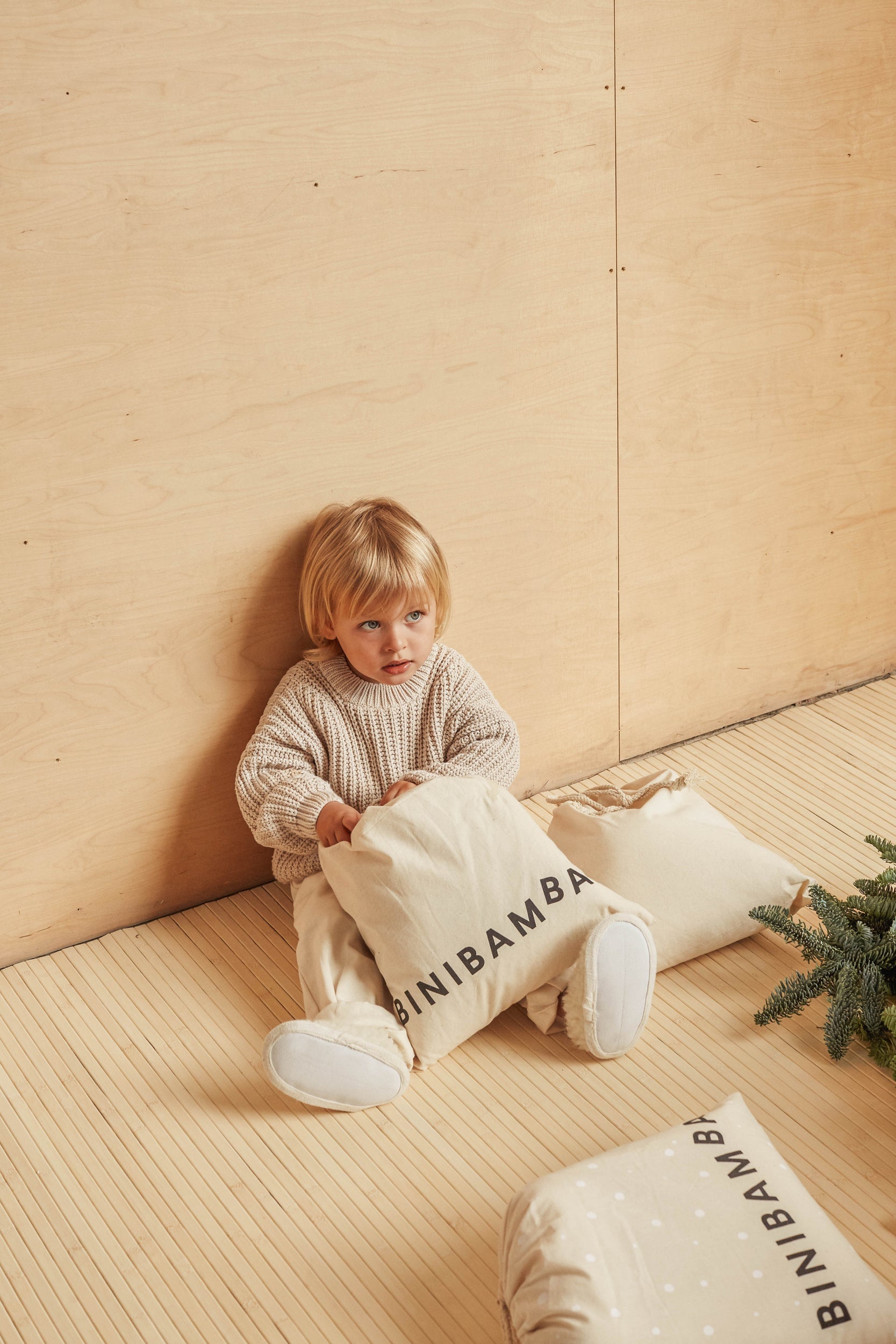 Our merino booties are presented in their own mini BINIBAMBA dustbag making them the perfect gift for tiny feet.
