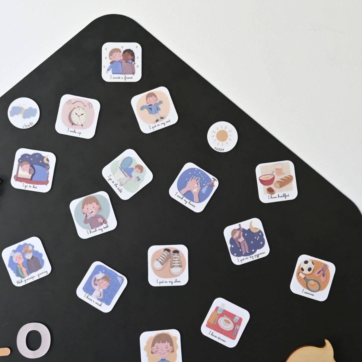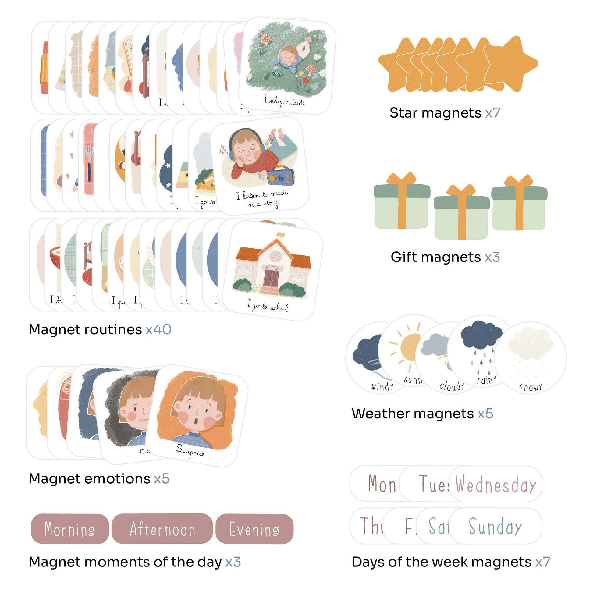 • 40 routine magnets (morning and evening) including 3 family magnets: with mom, with dad, with grandpa/grandma