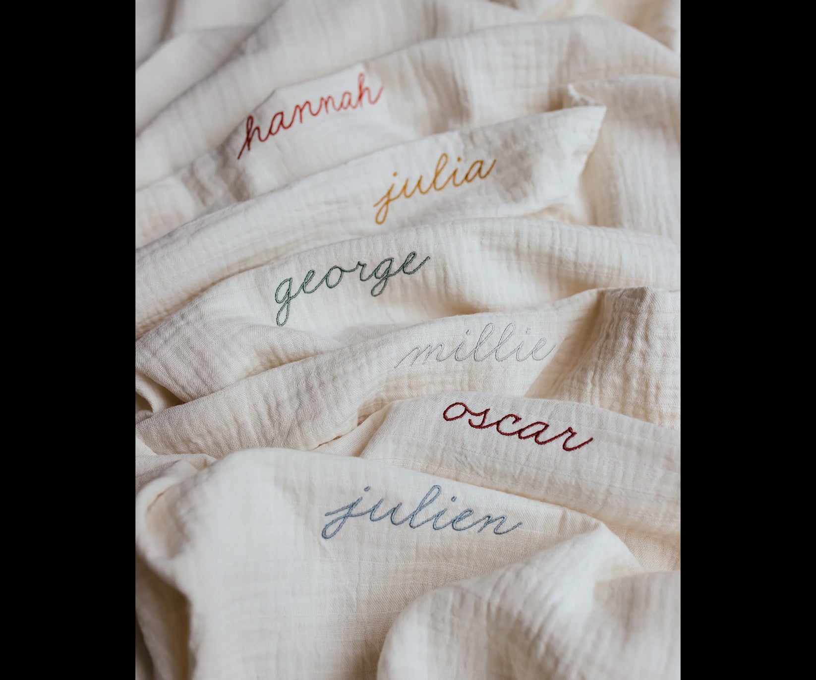 it's as easy as 1, 2, 3! when you choose our personalised towel bundle, you get to personalise all three items with your favourite name and color. we'll carefully embroider your chosen name and colour onto each piece, making this bundle uniquely yours.