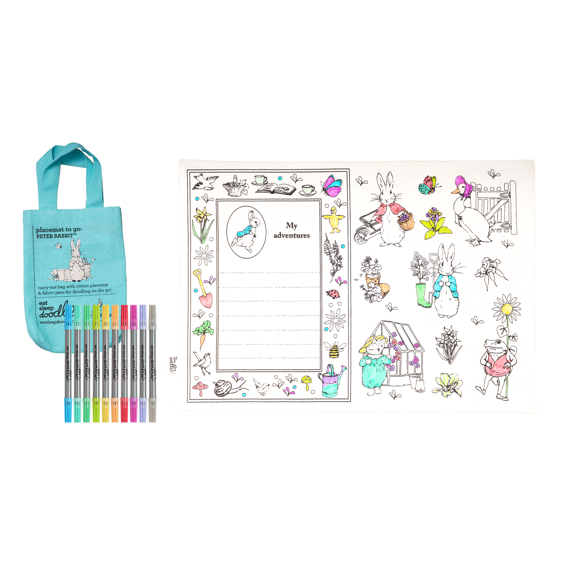 Kids can colour in and discover Beatrix Potter’s whimsical characters with this fun double-sided Peter Rabbit™ and friends placemat ‘to go’ - with included set of 10 wash-out fabric pens.