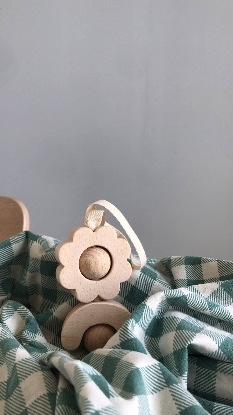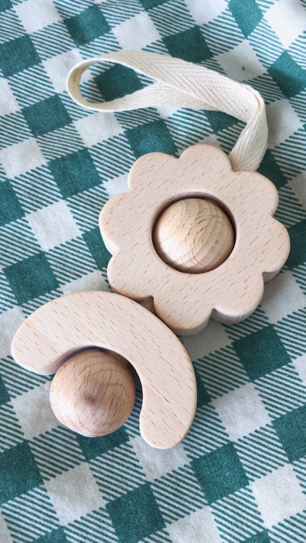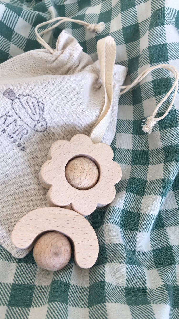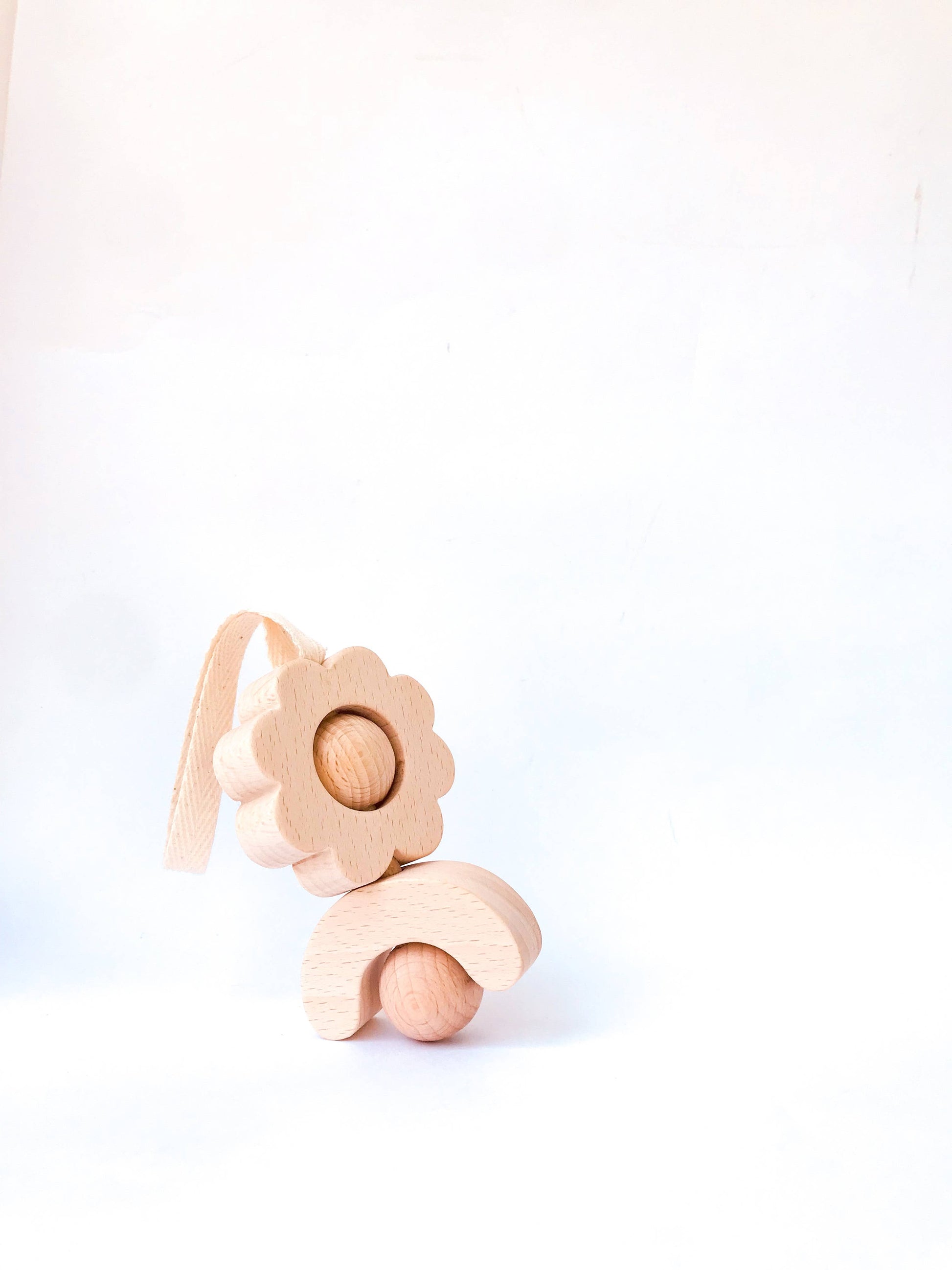 Prima, like the first flower of the first spring. A rattle that can be hung everywhere, composed of several modules to be manipulated to stimulate motor skills. A simple toy made of raw wood, without varnish or products, to be given as a gift from birth. An object that will stand the test of time, whether in small hands or in decoration. To play with poetry and simplicity, and to gently awaken to the world.