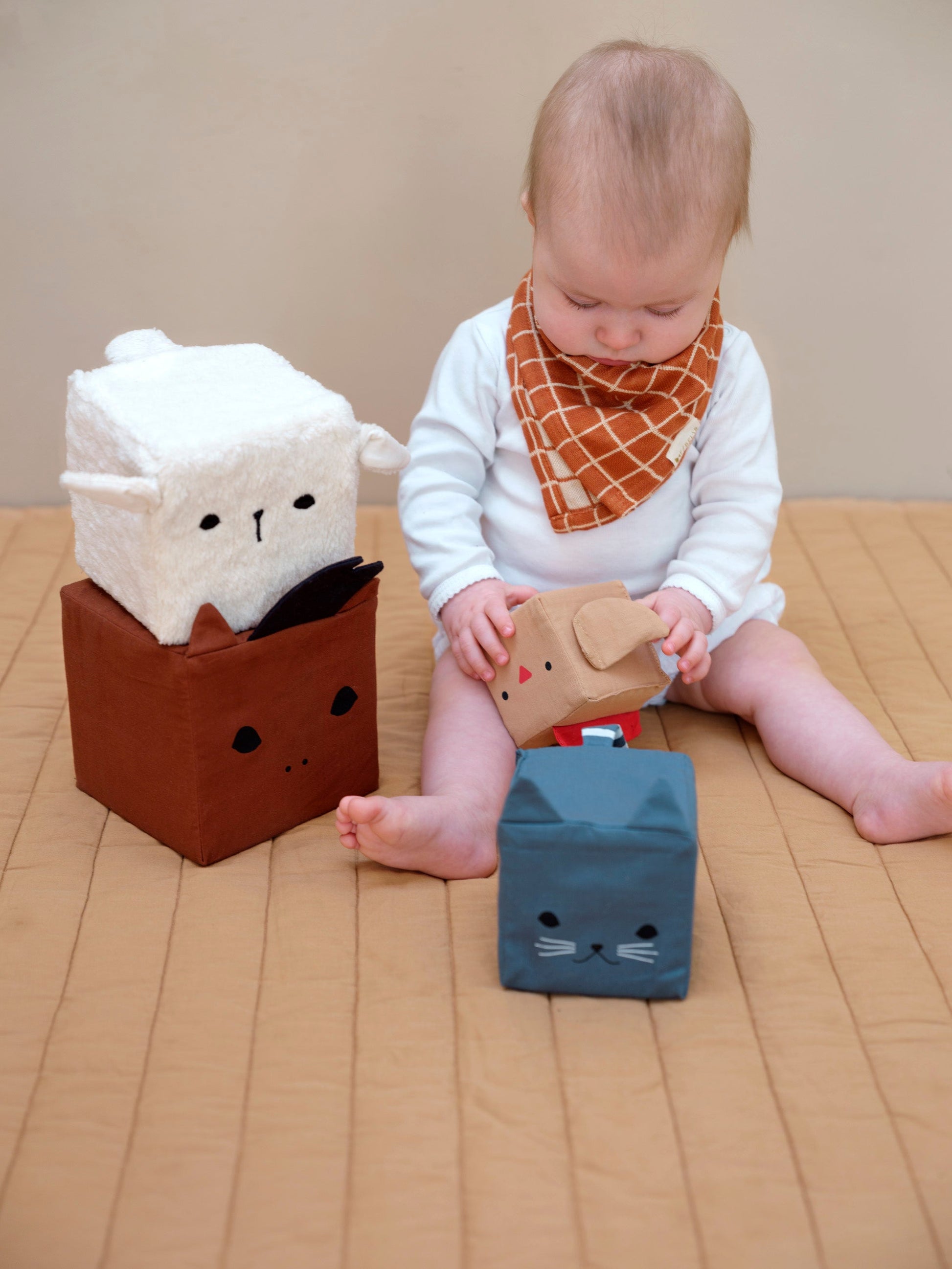 Soft Blocks - Farm Animals - a delightful set of toys designed to engage and entertain your little one while promoting their cognitive and motor development. These soft blocks feature charming farm animal designs, creating a fun and educational playtime experience.