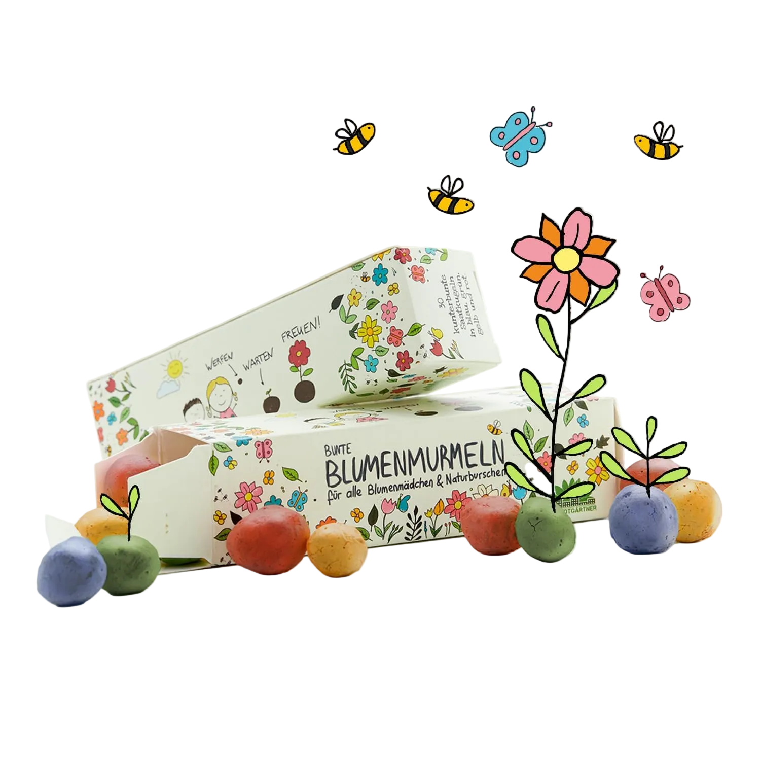 Las Flower Marbles son pequeñas bolas de semillas diseñadas para hacer crecer flores silvestres de forma fácil y divertida. Cada bola contiene una mezcla de arcilla, tierra y semillas de flores, que al entrar en contacto con el agua se deshace y permite que las semillas germinen de manera natural.