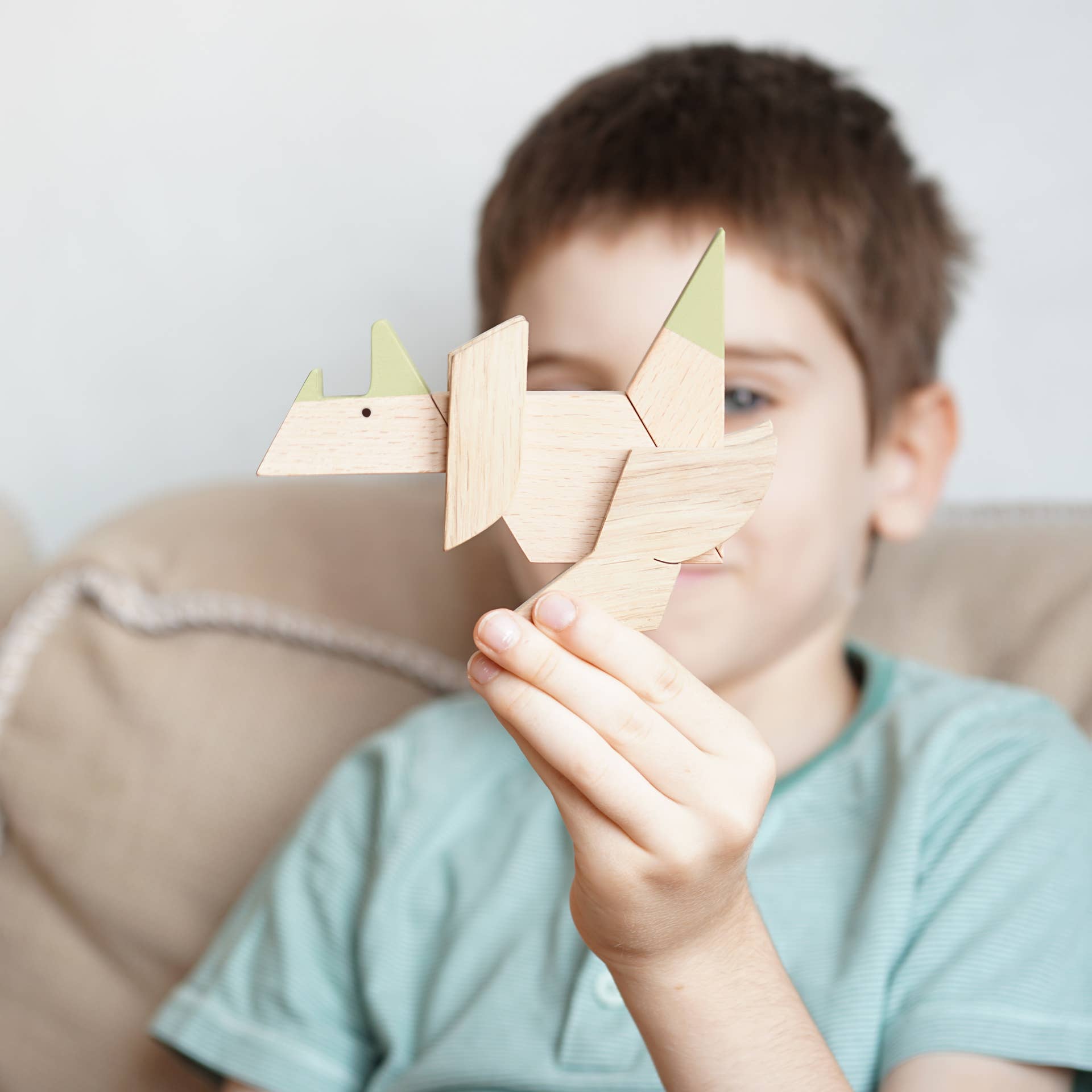 Triceratops magnetic puzzle is crafted with natural materials beech and oak. it is painted with eco-friendly paints.